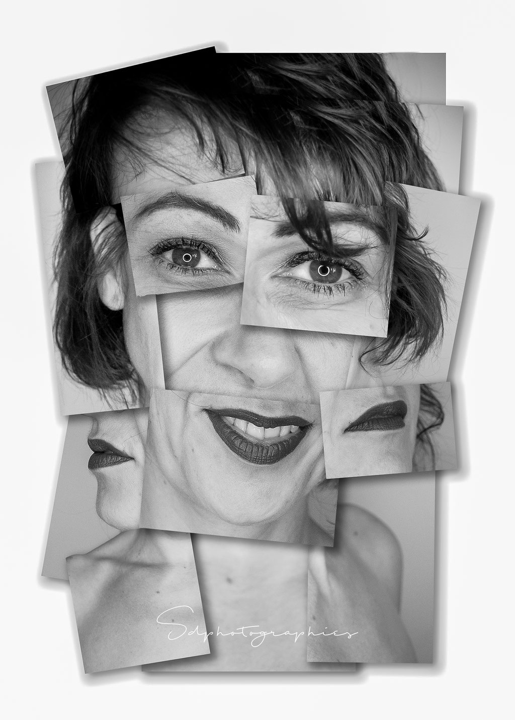Nouvelle série mise en place, que j'aimerai développer... Un travail de post production suite à une série de plusieurs portraits réalisés avec Mademoiselle s78. Composition de plusieurs clichés formant un portrait abstrait déstructuré.